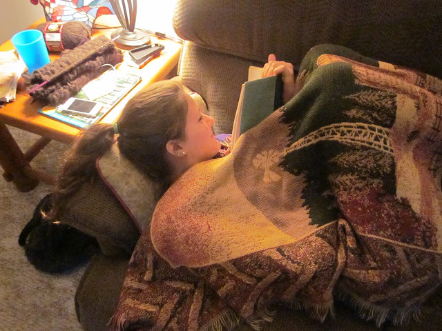 So I was incredibly sore from our biking and running yesterday so Kelley and I decided today would be a rest day! I spent the day reading and Kelley spent the day saying she was going to clean her room and actually not doing it...until later. Jersey was the laziest dog in existence as well. As you can see in the picture, she was in love with my Iowa blanket. I moved it from her so that it wouldn't smell like the dog blanket but instead she just climbed on top of it as you can see and some how managed to place herself at the crest of the mound so it looked like she was on a small hill...it was really strange. She liked it though cause she could see out the window then. Here is another picture of her being a freak today: